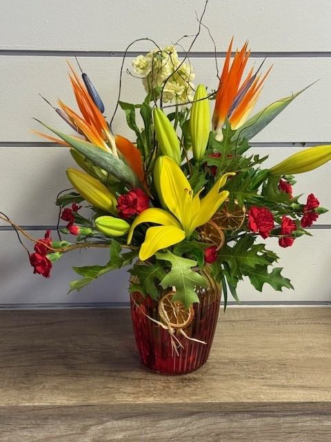 A bountiful Fall or Thanksgiving flower arrangement can spice up the room. Have us send your loved ones a stunning Bouquet of Fall Flowers as a gesture of your gratitude. Our Centerpieces come in a variety of styles from Traditional to unique modern twist. Fall Flowers can be accented with natural elements like pumpkins, wheat, fall leaves, branches, berries and more. Decorate your home with a stunning Fall planter which will lead you to a warm welcoming fall wreath. A breath taking garland wrapped around the staircase invites you in to relax. Centerpiece of all sizes and variety placed in every room radiates happiness !